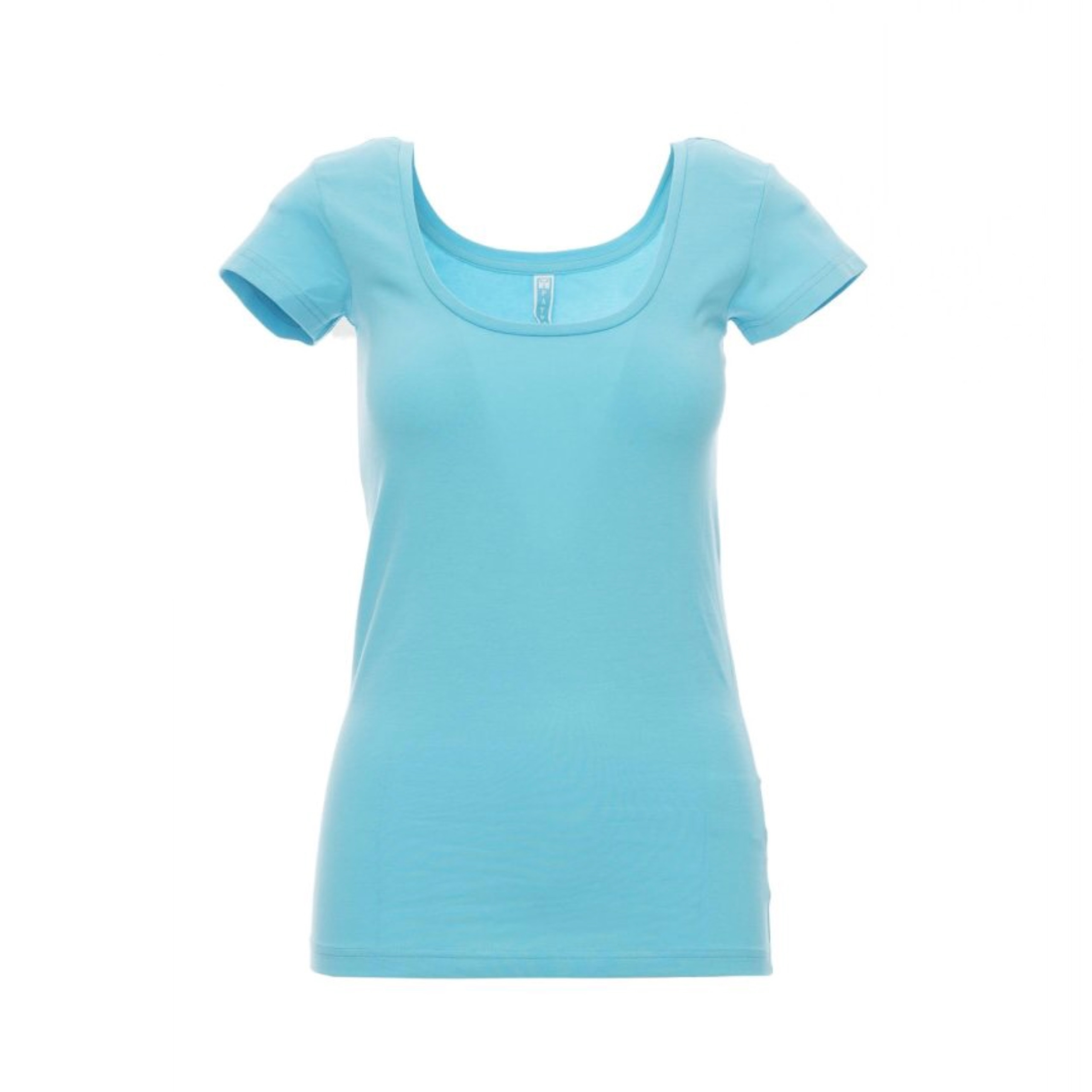 T-shirt manica corta sfiancata da donna con ampio scollo squadrato, colletto basso da 1cm, cucita lateralmente.