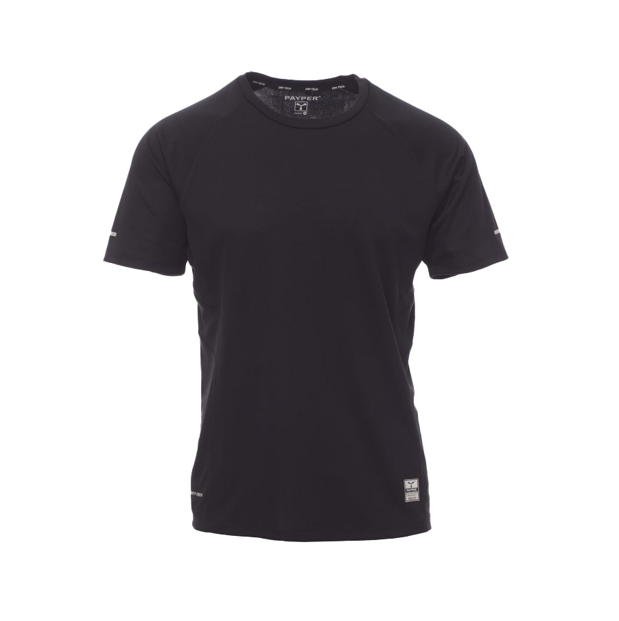 T-shirt da uomo tecnica-sportiva con manica raglan, doppia cucitura laterale per una migliore vestibilità, fondo sagomato e più lungo sul retro, inserto riflettente alla maniche e retro collo, nastratura del collo a contrasto, etichetta transfer.