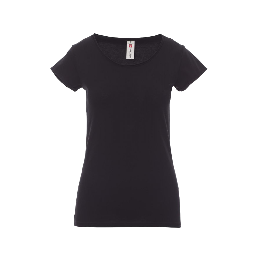 T-shirts sfiancata da donna manica corta con scollo ampio, basso da 1.0cm a taglio vivo, spalle calibrate con cucitura doppia interna, maniche corte e strette finite a taglio vivo con fine risvolto, cucitura laterale, etichetta removibile.