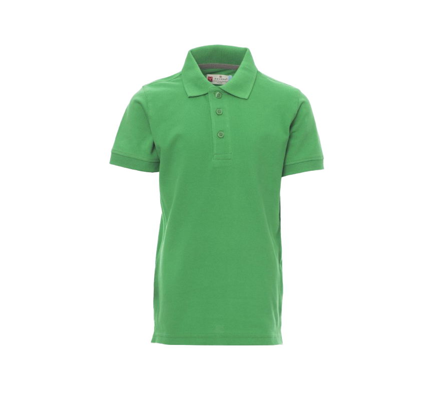 Polo da bambino a manica corta con 3 bottoni in tinta effetto perlato, colletto e bordo manica a costine, spacchetti laterali, cuciture del collo coperte con nastro a contrasto, cuciture stretch, nastro di rinforzo laterale, rinforzo sagomato retrocollo.